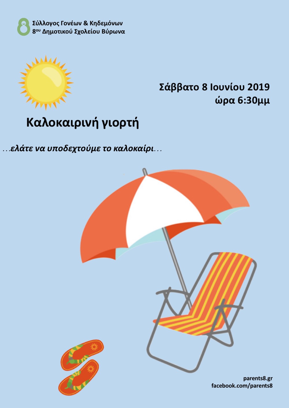 Το Σάββατο 8 Ιουνίου από τις 6:30μμ σας καλούμε στην καλοκαιρινή μας γιορτή για να υποδεχτούμε το καλοκαίρι!