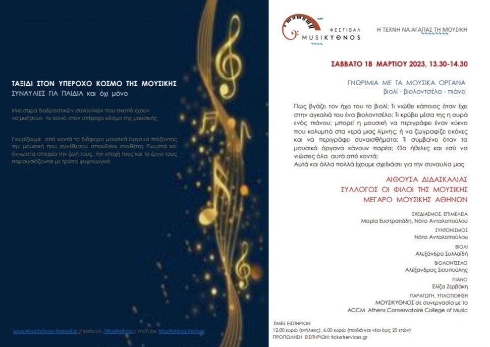 Γνωριμία των παιδιών με τα μουσικά όργανα, στο Μέγαρο Μουσικής Αθηνών