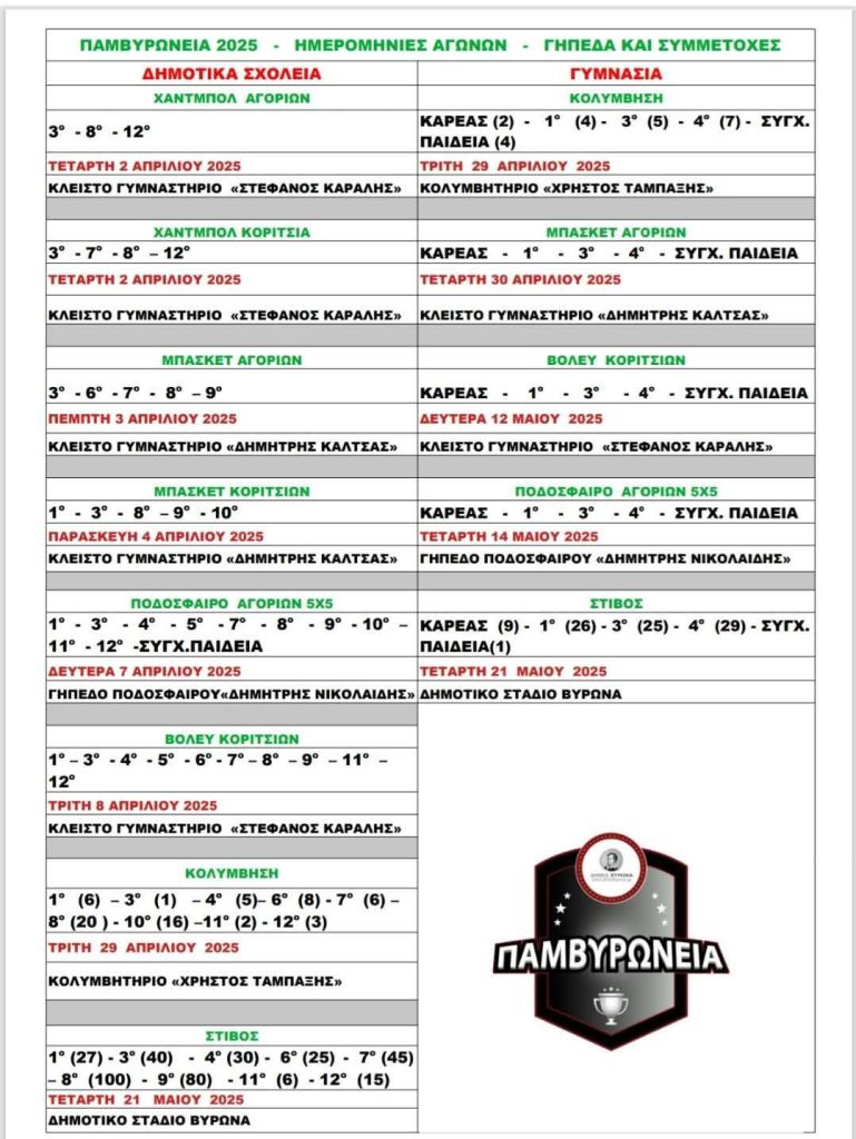 Αύριο 2/4/2025 ξεκινούν οι συμμετοχές στα Παμβυρώνεια 2025.